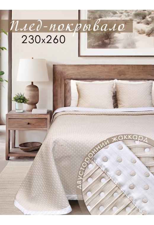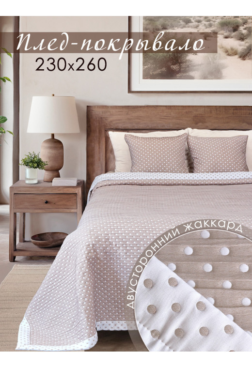 Плед-покрывало Усадьба Однотонный закругленный край серый светло-коричневый