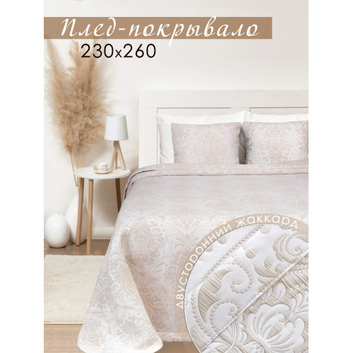 Покрывало с жаккардовым рисунком станет украшением любой спальни. Красивые универсальные цвета легко впишутся в интерьер спальни. Ненавязчивый рисунок, однотонный цвет - все это позволяет покрывалу дополнить интерьер спальни современным звучанием. Полиэстер в составе ткани делает покрывало долговечным и устойчивым к загрязнениям и истиранию, придает ткани благородный блеск. Хлопок - делает материал дышащим, гипоаллергенным, приятным на ощупь. Состав ткани: 20% Хлопок, 80% полиэстер. Плотность ткани: 340гр/м2. Изделие выполнено из трёхслойного жаккардового полотна, подгиб с евроуглом. Изнаночная сторона покрывала контрастного цвета с повторением рисунка лицевой стороны. Покрывало подойдет на двуспальную кровать с высоким матрасом и на кровать евро. Это покрывало - идеальный подарок любой женщине на Новый год или 8 Марта, на свадьбу, на новоселье или ко дню рождения. Покрывало подчеркнет вкус владельца и добавит интерьеру утонченность и изысканность. Привнесите уют и красоту в спальню с нашим покрывалом. Чтобы