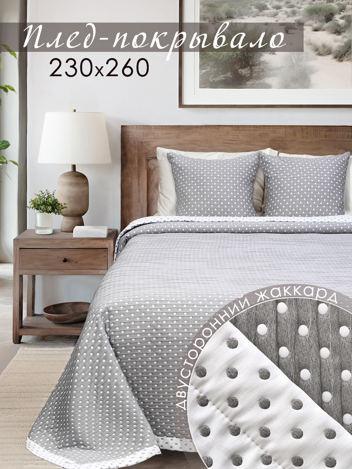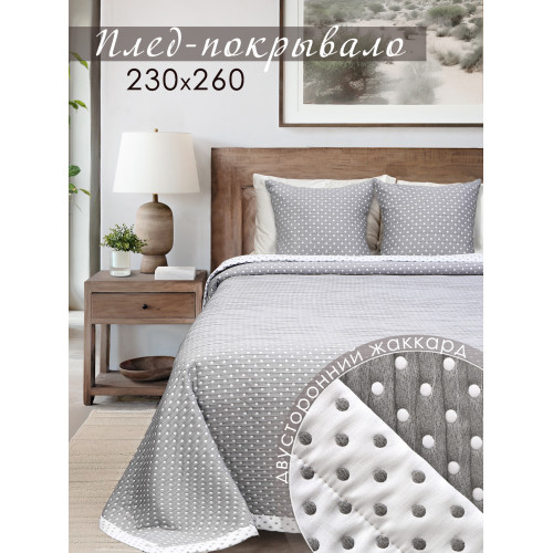 Плед-покрывало Laleli DRS 80321v609 горох серый белый
