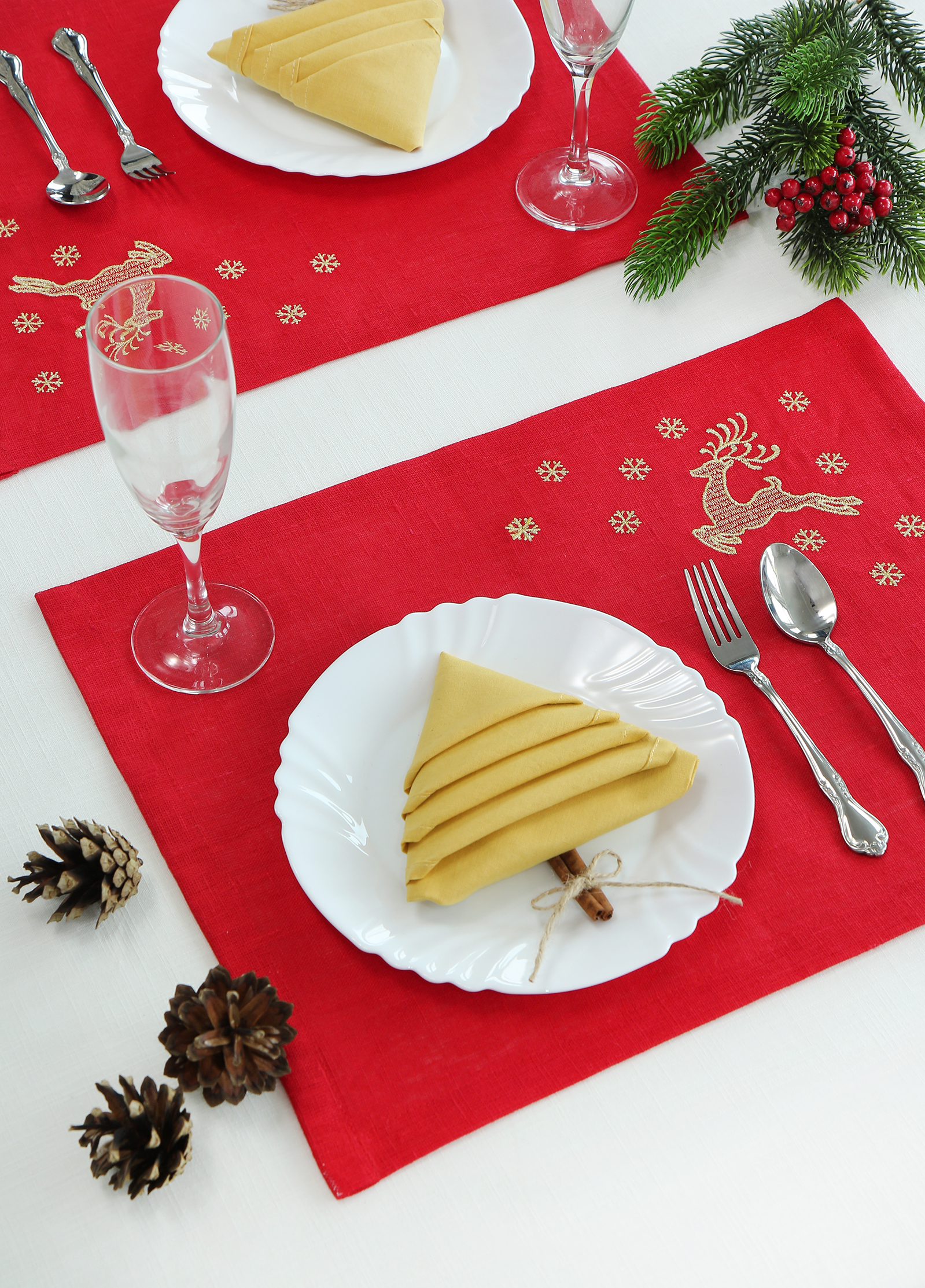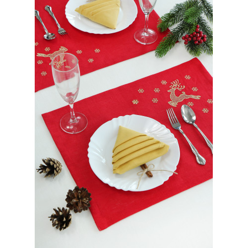 Комплект для сервировки стола Морозко золотая вышивка красный желтый салфетка 2 шт ланчмат 2 шт