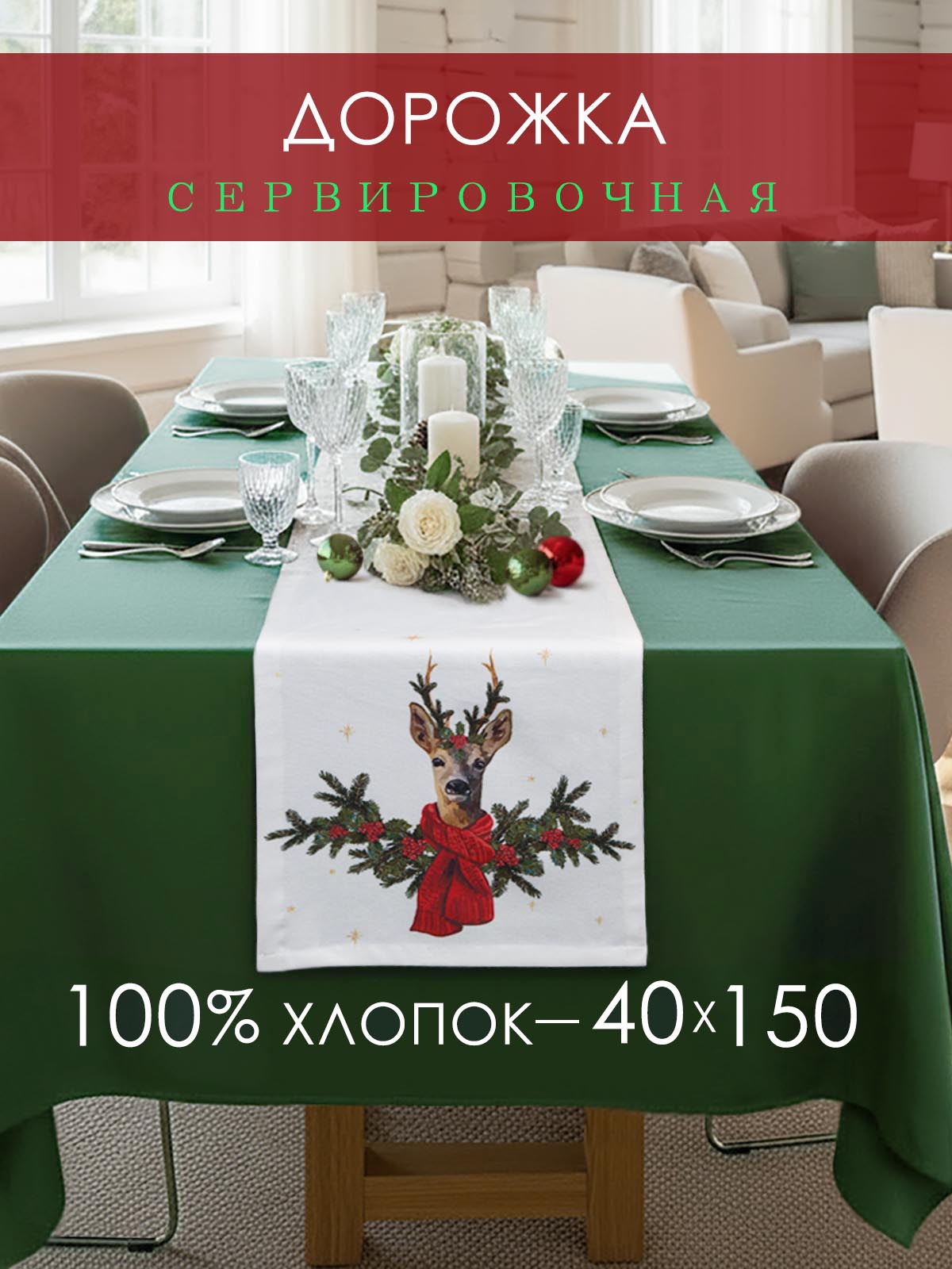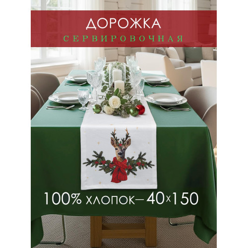 Дорожка декоративная Олень хлопок белый