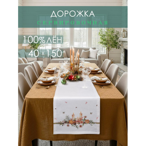 Дорожка декоративная Свечи хлопок белый