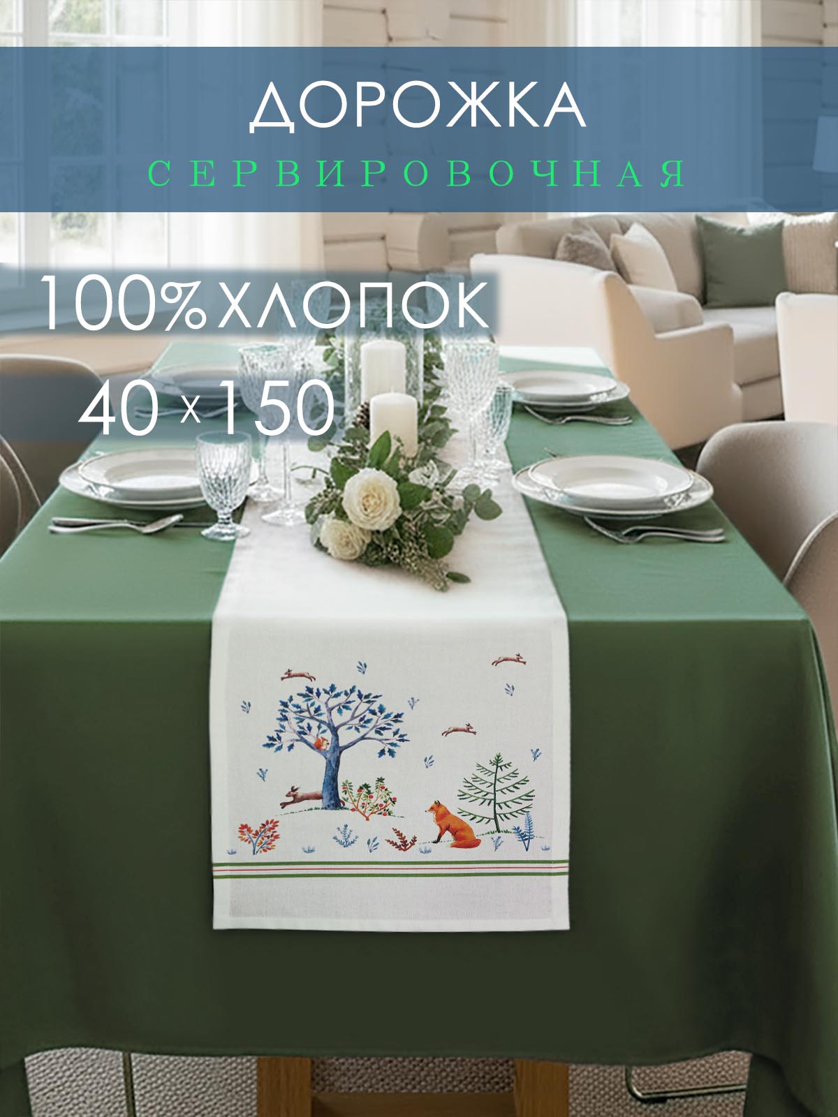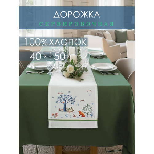Дорожка декоративная Звери в лесу хлопок белый