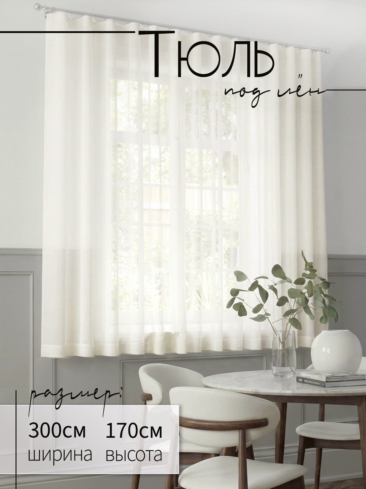 Привлекательный тюль с выразительной фактурой полотна внешне выглядит благородно и изысканно. Тюлевое полотно с отличными потребительскими характеристиками. Это 100% полиэстер, но выглядит как занавес изо льна. Подобный тюль можно использовать в качестве самостоятельных лёгких штор. Он будет отлично смотреться на окне в гостиной, спальне, на кухне и в детской комнате. Верх шторы на прозрачной шторной ленте, что позволяет регулировать ширину полотна и использовать любой тип карниза. Тюль прекрасно рассеивает яркие солнечные лучи, легко стирается и гладится. Полотно требует деликатного режима стирки, ручного или машинного. Температура воды при стирке 30-40 градусов. Гладить в режиме "синтетика".