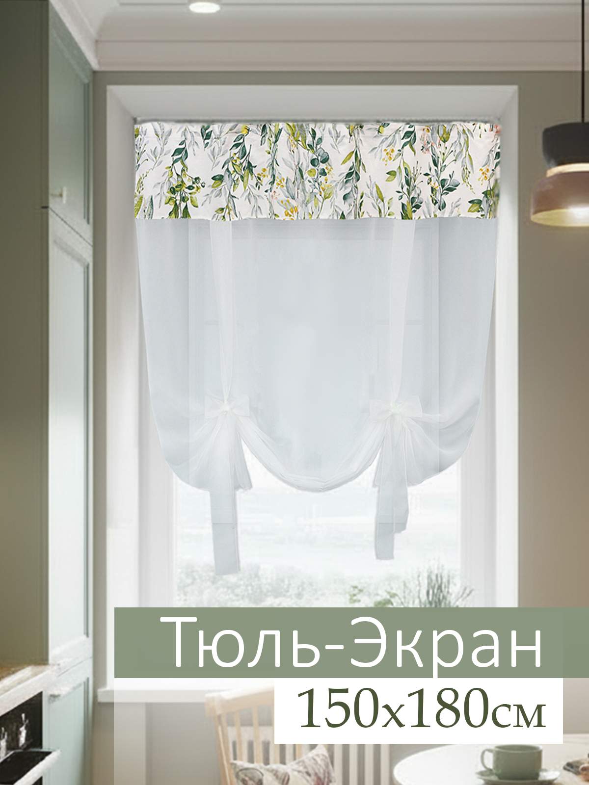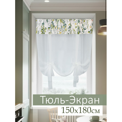 Тюль-экран Усадьба Лиана белый желтый зеленый